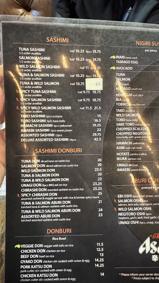 The menu boasts an enticing selection of sashimi, including Tuna and Salmon options starting at CA$10.25, which promise a clean and delicate taste. For a richer experience, try the Wild Salmon Sashimi at CA$11.25, or indulge in the Tuna & Salmon combo for a delightful balance of flavors.